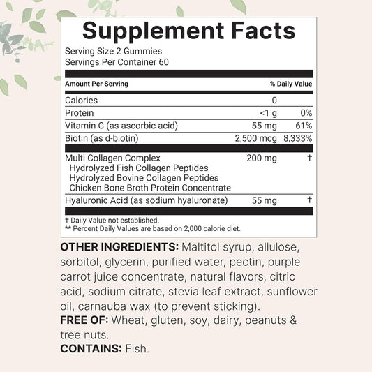 Collagen Gummies with Biotin, Hyaluronic Acid & Vitamin C Complex - Pomegranate & Berry Flavored - Sugar Free Non-GMO - 120 Count