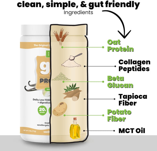 Vanilla Collagen Peptides & Oat Protein Powder - Low FODMAP, Dairy-Free, Non-Bloating (20 Servings)