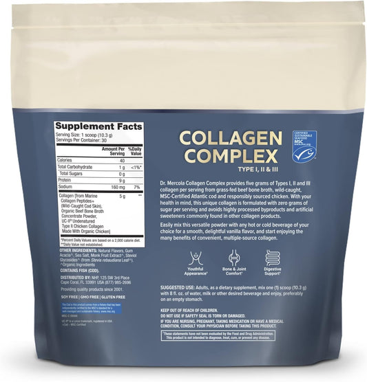 Vanilla Flavored Collagen Complex Powder - 30 Servings, Supports Skin Health, Non-GMO, MSC Certified