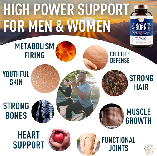 WINDSOR BOTANICALS Collagen Burn Capsules with Hyaluronic Acid - Thermogenic Formula for Women and Men - 90 Pills