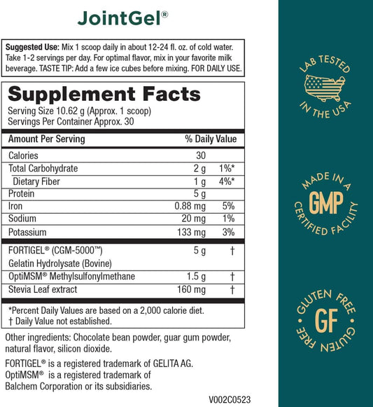 Bioactive Collagen Peptides + MSM Joint Gel Formula for Flexibility and Cartilage Support - Super Chocolate Powder with Dual Action - 30 Servings