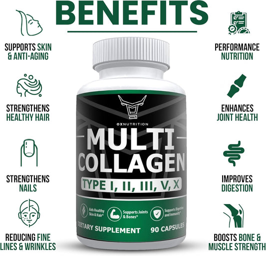 Bundle of OX OXNUTRITION Multi Collagen Capsules and Grassfed Bovine Colostrum for Joint Health and Gut Support