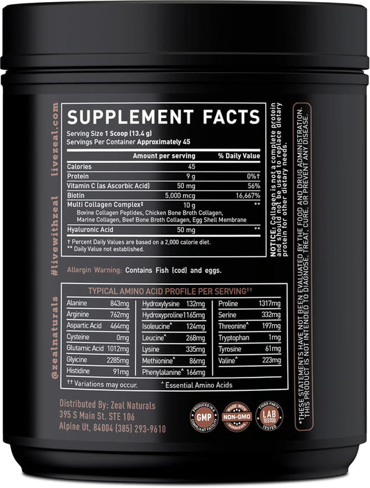 60 Servings of Zeal Naturals Pure Collagen Peptides Powder for Healthy Skin and Joints