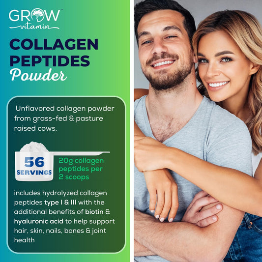 Unflavored Collagen Peptides Powder for Hair, Skin, Nail Health - Grass Fed Bovine Collagen Type I & III - 20 OZ, 56 Servings - Supports Bone & Joint Health
