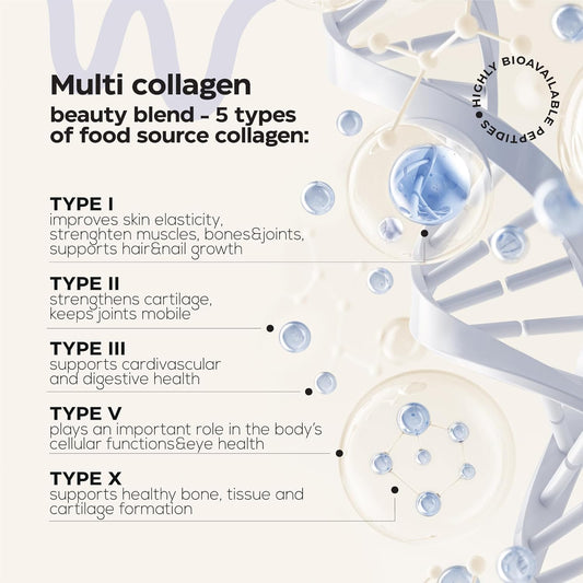 Multi Collagen Peptides Protein Powder with Vitamin C, Biotin, Hyaluronic Acid - Hair, Skin, Nails - Marine, Bovine, Chicken, Eggshell - Vanilla (45 Servings)