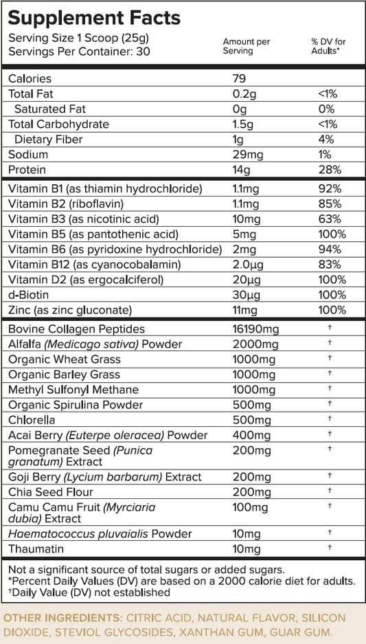 KAILO Nutrition Mixed Berry Collagen with Super Greens, Vitamins, Protein - Skin, Hair, Immune Support - 26 oz.