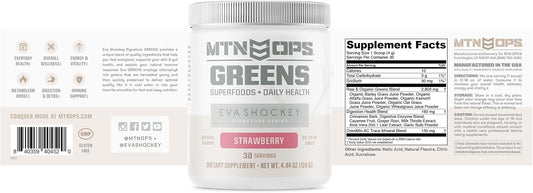 MTN OPS Eva Shockey Signature Series Organic Super Greens Powder, Strawberry Flavor, 30 Servings - 4.4 Ounce Size