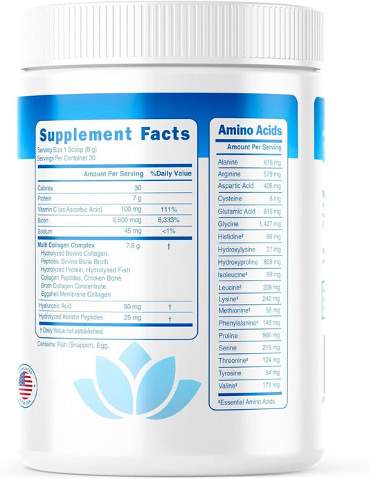 Unflavored Multi Collagen Powder with Vitamin C, Biotin, Hyaluronic Acid & Keratin - 8oz, 30 Servings - Non-GMO, Gluten-Free Collagen Supplements