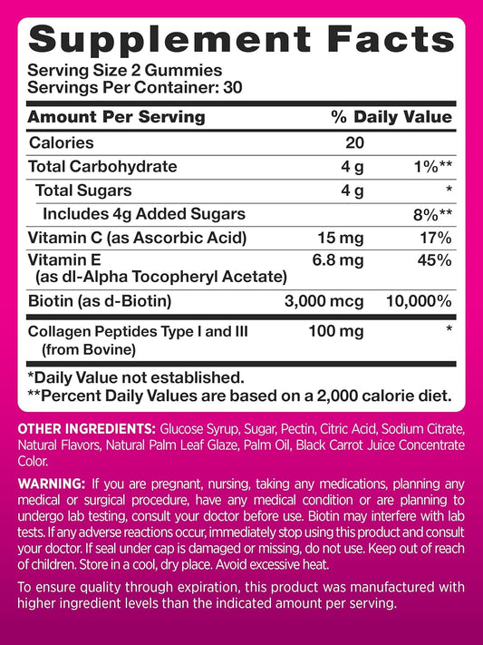 Vegan Collagen Gummies with Biotin, Vitamin C, & Zinc for Skin, Hair, Nails, & Joints - 60 Count