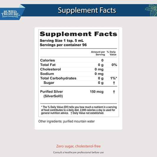 16 oz. Buried Treasure Purified Silver Liquid: Non-Accumulative Nano Silver Spray & Dietary Immune Supplement - 30 PPM, 96 Servings