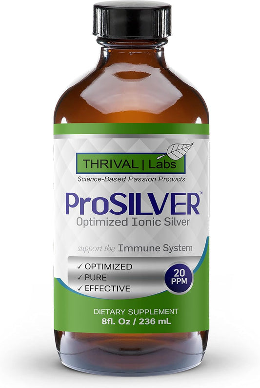 20 PPM ProSILVER Ionic Colloidal Silver Liquid for Immune Support - 8oz Dark Glass Bottle with Dropper - Thrival Labs