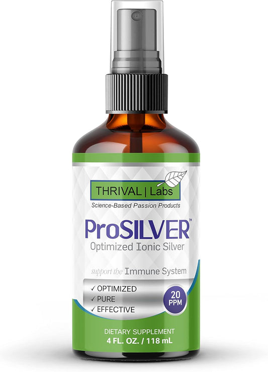 20 PPM ProSILVER Ionic Colloidal Silver Liquid for Immune Support - 4oz Dark Glass Bottle with Sprayer - Thrival Labs