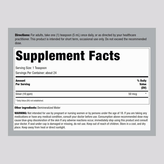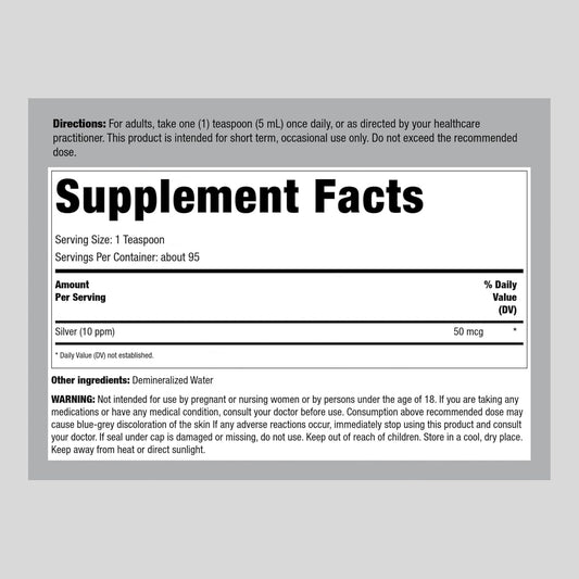 Premium 10PPM Colloidal Silver Liquid - 16 fl oz - Bio-Active Nano Silver Technology - Non GMO, Gluten Free - Piping Rock