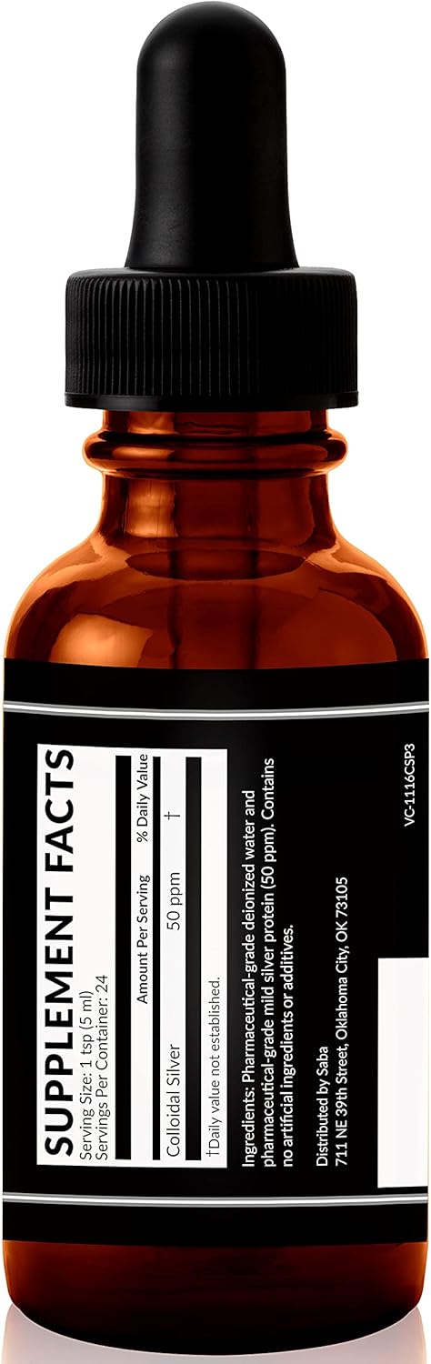 Saba Colloidal Silver 50PPM 4 oz - Boost Immune System and Promote Wellness - Versatile Household Essential for Various Uses - 24 Servings