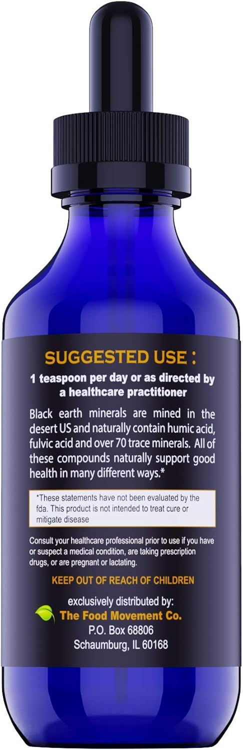 Vegan Black Earth Silver Liquid with Humic and Fulvic Acids - 20ppm Colloidal Silver for Digestion, Immune Support - 4 oz Dropper