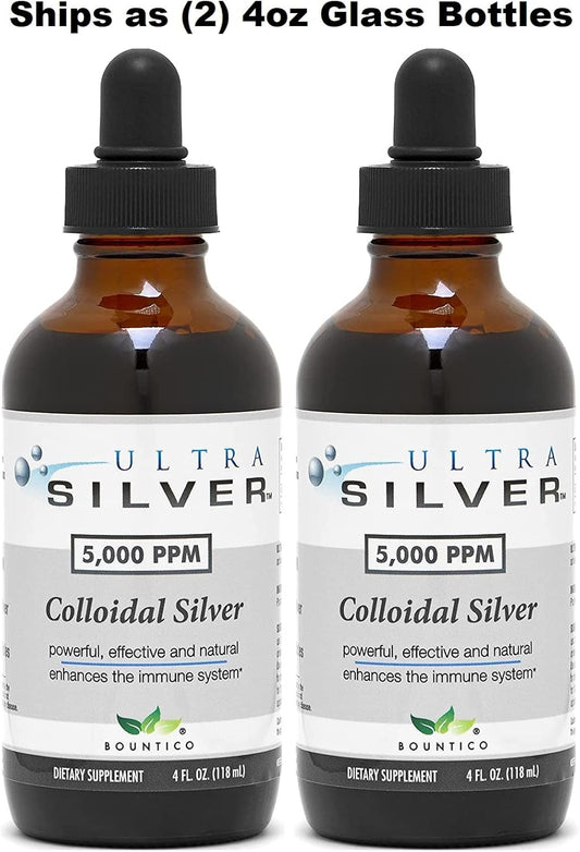 5,000 PPM Ultra Silver® Colloidal Silver 8 Oz - 2 Glass Bottles - Mineral Supplement - True Colloidal Silver with Dropper