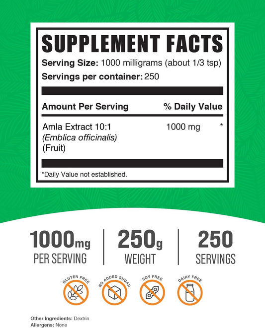 Amla Extract Powder - Indian Gooseberry Supplement, Amla Fruit Extract - Gluten Free, 1000mg per Serving, 250g (8.8 oz) Pack