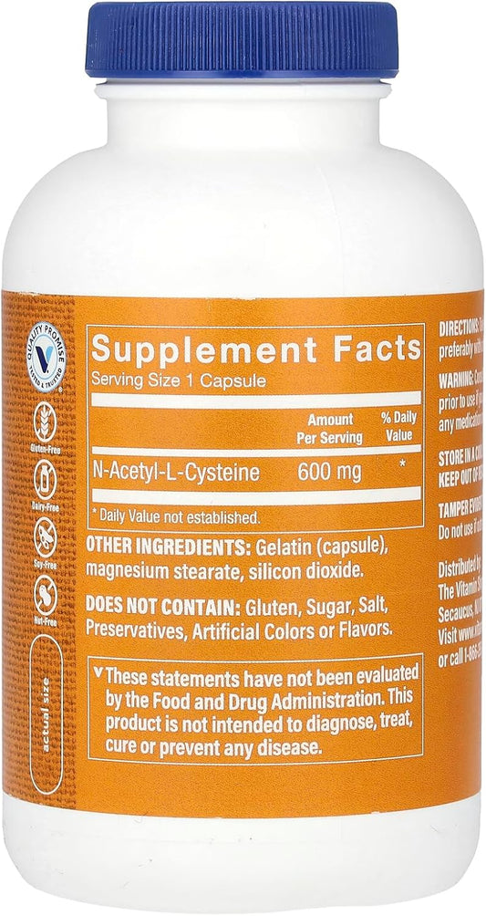 Vitamin Shoppe NAC N-Acetyl-L-Cysteine 600mg (200 Capsules) for Cellular Health and Immune Antioxidant Support