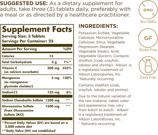 Solgar Glucosamine Chondroitin Complex - Extra Strength Tablets for Healthy Joints & Comfortable Movement - Non-GMO, Gluten & Dairy Free - 25 Servings