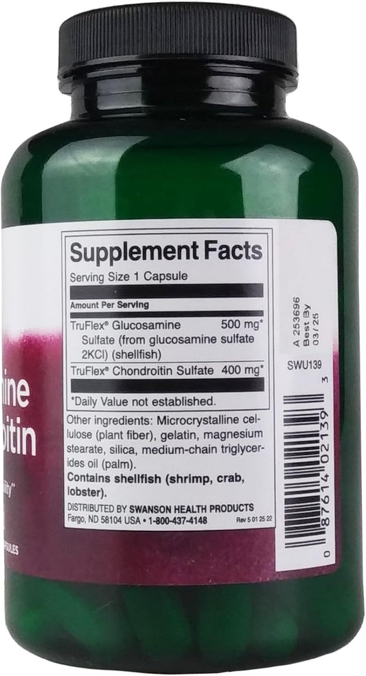 Swanson Glucosamine and Chondroitin Capsules - Joint Integrity and Flexibility Support - 90 Capsules, 900mg