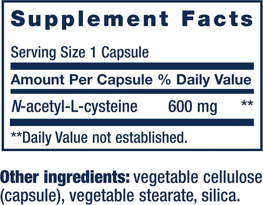 Life Extension N-Acetyl-L-Cysteine (NAC) 600mg x 60 Capsules - Immune, Respiratory & Liver Health, Potent Antioxidant, Free-Radical Support - Twin Pack