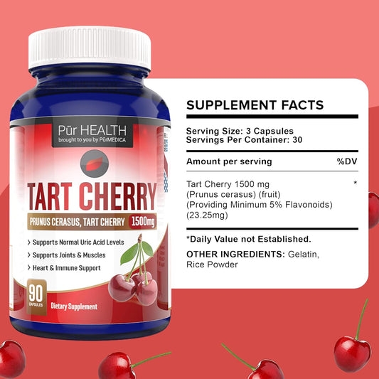 Tart Cherry Extract Capsules for Gout & Joint Support - 1500mg Supplement with Flavonoids - 90ct Cherry Juice Capsules