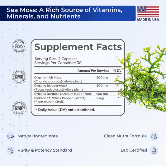 60 Vegan Capsules of TIVA Nutraceutics Irish Sea Moss with Bladderwrack, Burdock Root & BioPerine for Immune Support, Energy Boost, and Gut HealthVendor:TIVA NutraceuticsRegular price $107.25 AUDRegular priceUnit price / per-