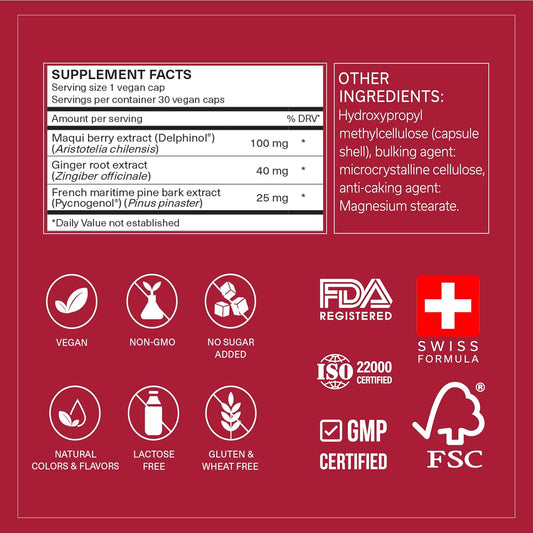 Daily Circulation Support Supplement with Antioxidant Powerhouse - Maqui Berry, Ginger, Pycnogenol - 30 Vegan Capsules for Inflammation & Blood SugarVendor:TRAVELSANARegular price $153.00 AUDRegular priceUnit price / per-