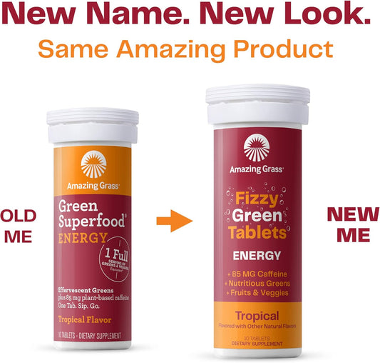 Energy-Boosting Fizzy Green Tablets with Green Tea Caffeine - Tropical Water Flavor, Antioxidants - 10 Count x 6 PackVendor:Amazing GrassRegular price $157.68 AUDRegular priceUnit price / per-