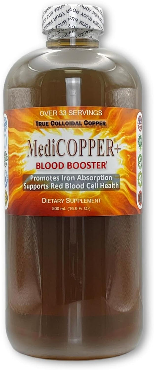 Nutraneering MediCOPPER® Plus True Colloidal Copper CuNP Supplement - 500 mL Blood Booster in Clear Plastic Bottle