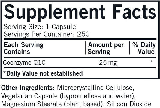 250 Capsules of Kirkman Coenzyme Q10-25 mg Supplement for Heart Health and Energy Boost