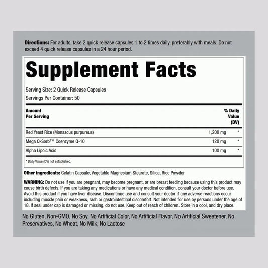 CoQ10 with Red Yeast Rice & Alpha Lipoic Acid - 100 Capsules, Non-GMO, Gluten Free Supplement