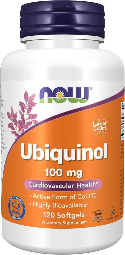 NOW Supplements Ubiquinol 100mg Softgels & L-Carnitine 1000mg Tablets for Fitness Support, High Bioavailability and Purest Form CoQ10 and Amino Acid