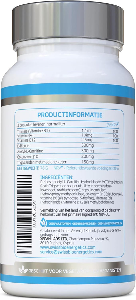 Swiss Bioenergetics CardioDefence - 90 Capsules with CoQ10, D-Ribose, Acetyl L-Carnitine, B Vitamins, MCT for Heart Health and Energy