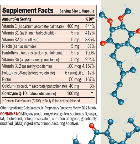 Coenzyme Q-10 100mg Capsules for Energy Production, Organ Function, Antioxidant Support, Aging, B-Complex - 30ct.