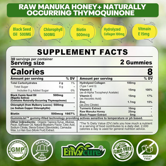 Sugar Free Black Seed Oil Gummies with Chlorophyll + CoQ10 200mg - EnvyCure