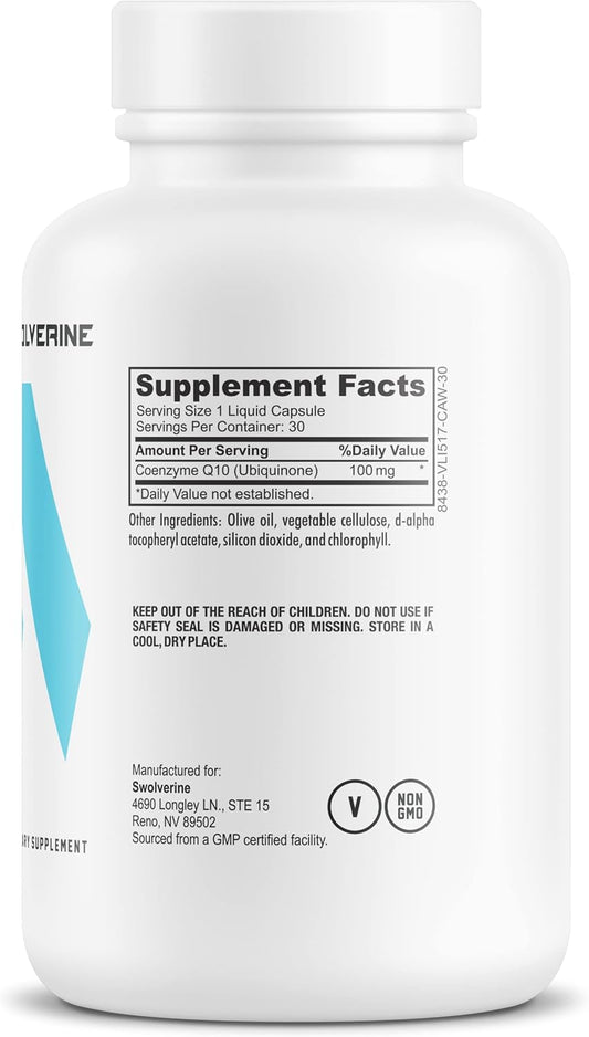 Swolverine CoQ10 Softgels 100mg - Heart Health Antioxidant, Cellular Energy Support - 30 Count, Non-GMO