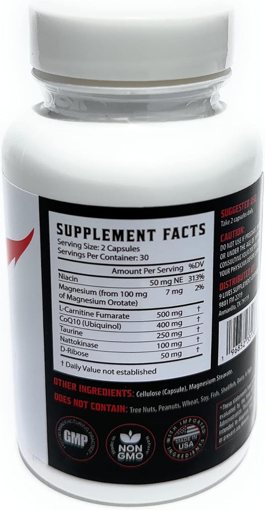 Lions Heart Daily Supplement with CoQ10, Magnesium, L-Carnitine, Taurine, Nattokinase, and Niacin for Nine Lives