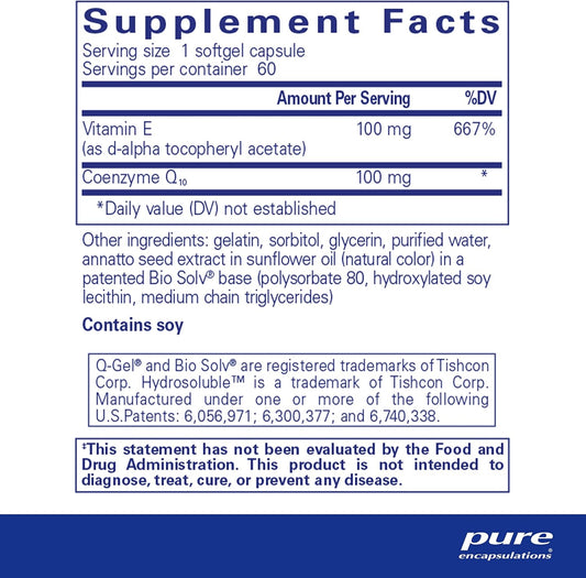 Pure Encapsulations Q-Gel 100: Hydrosoluble CoQ10 with Vitamin E for Enhanced Solubility - 60 Softgel Capsules