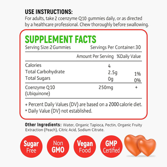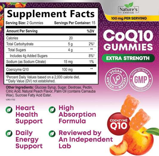 Antioxidant Heart Health Support CoQ10 Gummies - 100mg, 3X Absorption, Energy Boost, Non-GMO, 30 Count