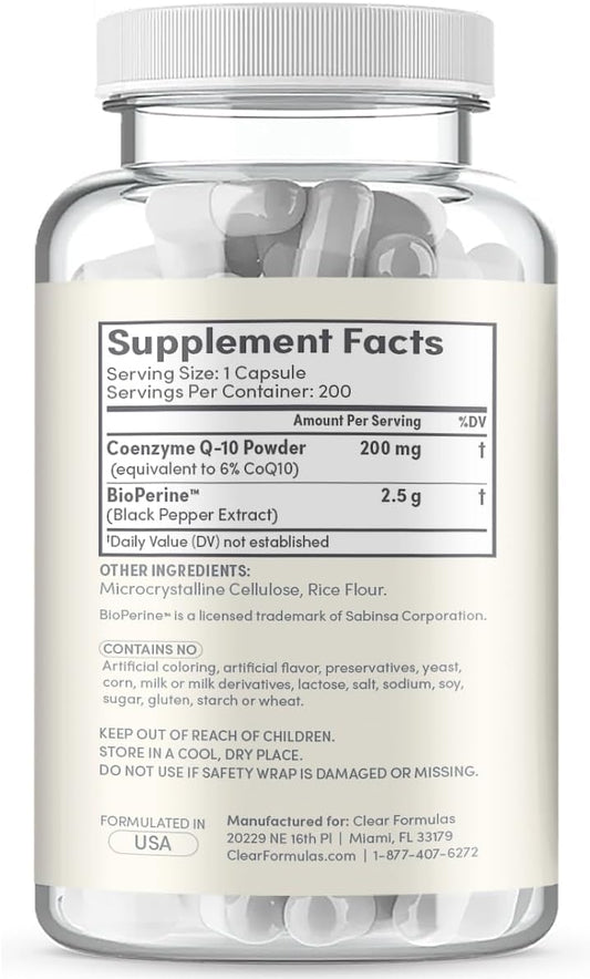 200mg CoQ10 with BioPerine for Heart Health & Anti-Aging - High Absorption Ubiquinone Capsules - 200 Servings