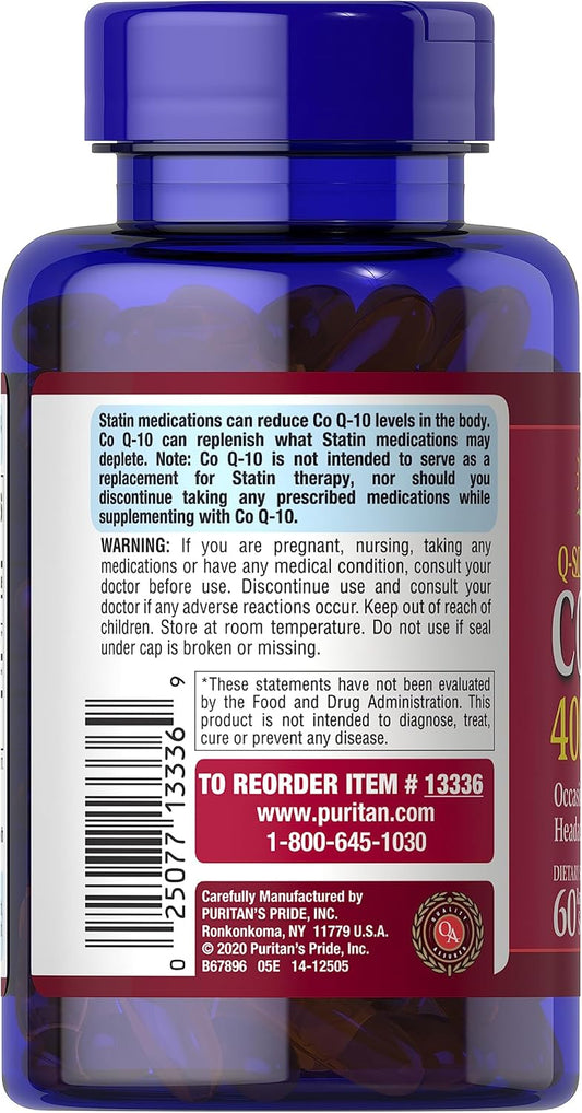60 Count Puritan's Pride Q-sorb CoQ10 400mg Rapid Release Softgels for Heart Health and Energy Support