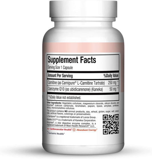 Maxi Health CoQ Carnitine Complex Capsules for Heart Health - Coenzyme Q10 & L-Carnitine Supplement - Kosher - 60 Count