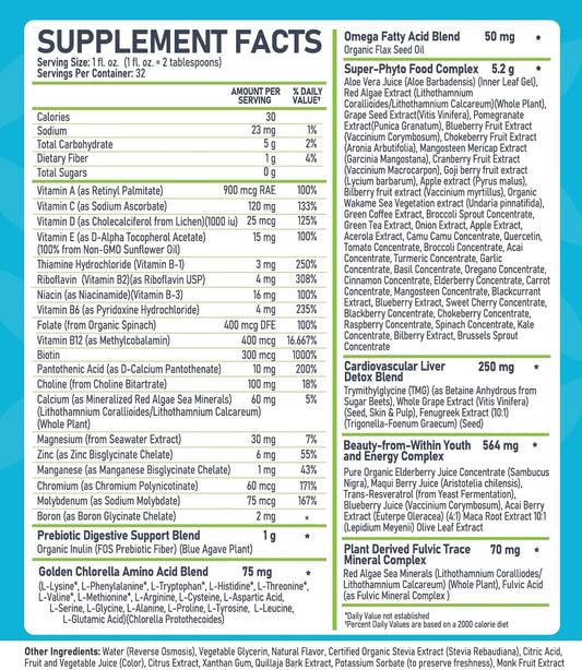 Organic Liquid Whole Food Multivitamin for Men & Women - Superfoods, Omegas, 100+ Ingredients - Vegan - 32 oz