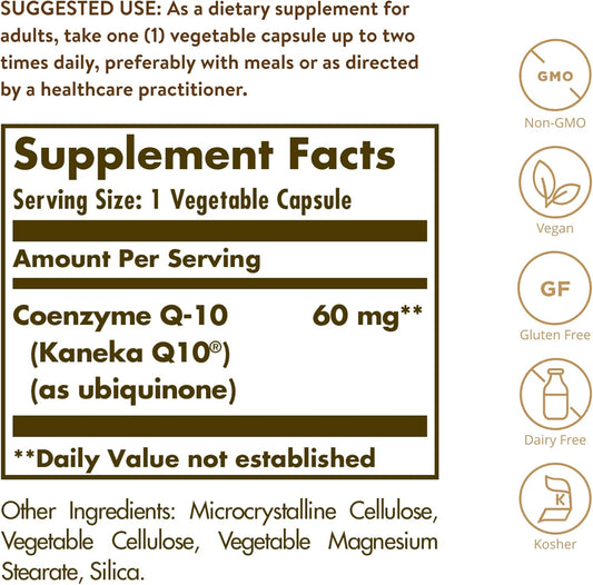 Solgar Vegetarian CoQ-10 Supplement 60mg - Heart Healthy Antioxidant, Non-GMO, Vegan, Gluten-Free, Dairy-Free, Kosher - 180 Capsules