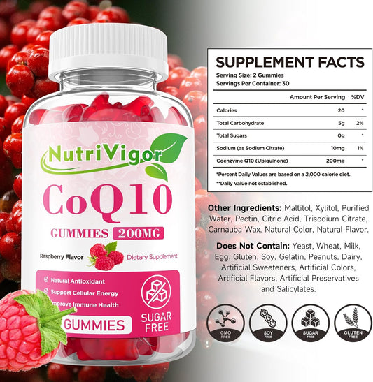 High Absorption NutriVigor CoQ10 Gummies - 200mg Supplement for Cellular Energy & Immune Health - Vegan & Gluten Free - Elderberry Flavor - 60 Count