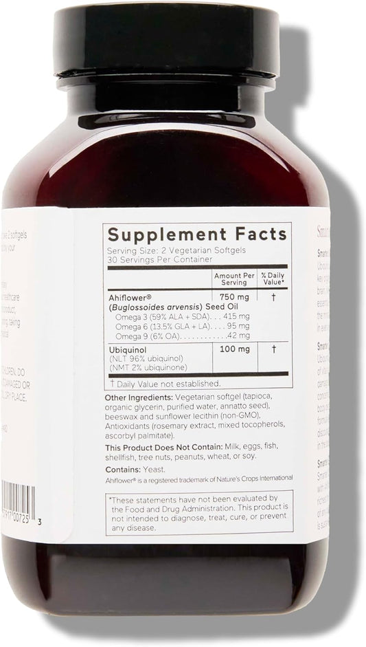 Vegetarian CoQ10 with Omega 3 Ahiflower Oil for Heart Health Support - Non-GMO, Soy Free Softgels - 6 Pack