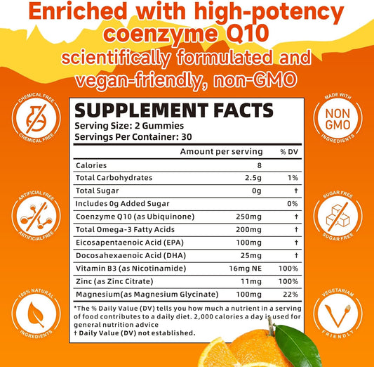 2 Pack BVIVLOO CoQ10 Gummies 250mg with Omega-3, B3, Zinc, Magnesium - Heart Health & Antioxidant Support - 120 Count