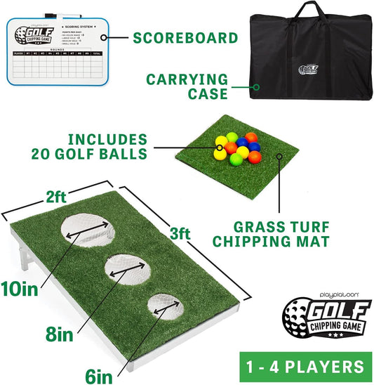 Golf Cornhole Game Set with Foam Balls, Chip Mat, Scoreboard, and Carry Case - Perfect for Golfers' Chipping Practice and Backyard Fun