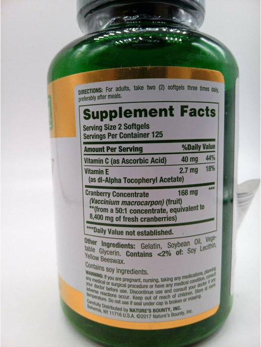 Bulk Pack of 1500 Nature's Bounty Cranberry with Vitamin C Softgels - 250mg each